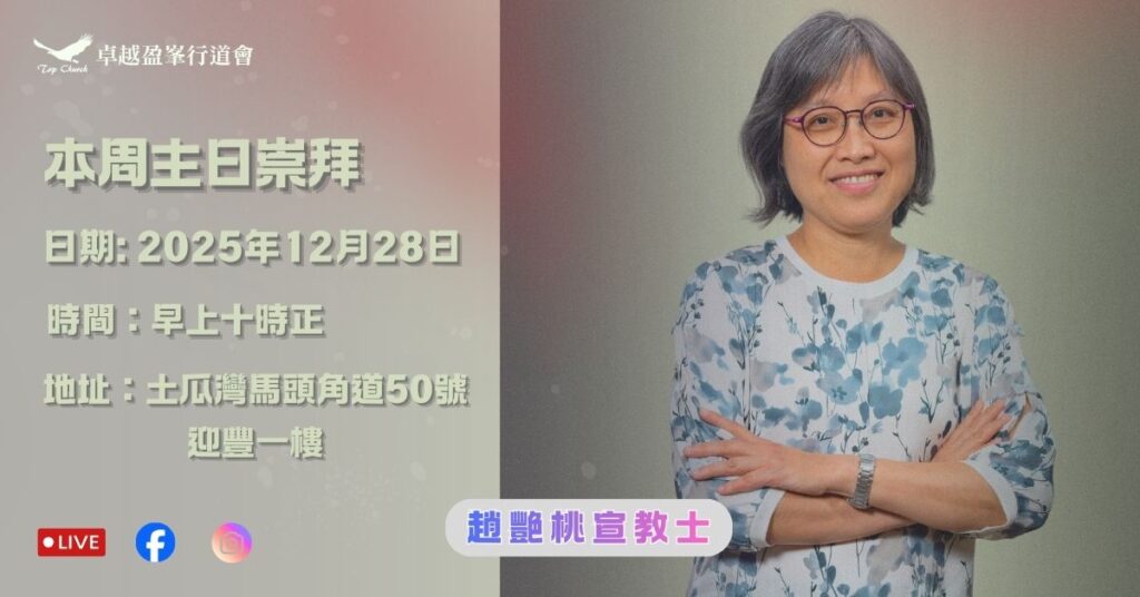 本周主日崇拜 日期:2025/12/28(日) 時間:早上十時正 地點:九龍土瓜灣馬頭角道50號迎豐一樓 講員 […]